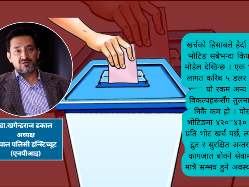 खर्चको हिसाबले हेर्दा आइ–भोटिङ सबैभन्दा किफायती मोडेल देखिन्छ । एक भोटको लागत करिब पाँच डलर पर्छ । यो रकम अन्य विकल्पहरूसँग तुलना गर्दा निकै कम हो । पोस्टल भोटिङमा ४२०–४३० रुपैयाँ प्रति भोट खर्च पर्छ, त्यो पनि द्रुत र सुरक्षित अन्तर्राष्ट्रिय कागजात बोक्ने सेवामार्फत मात्रै सम्भव हुने अवस्था छ ।