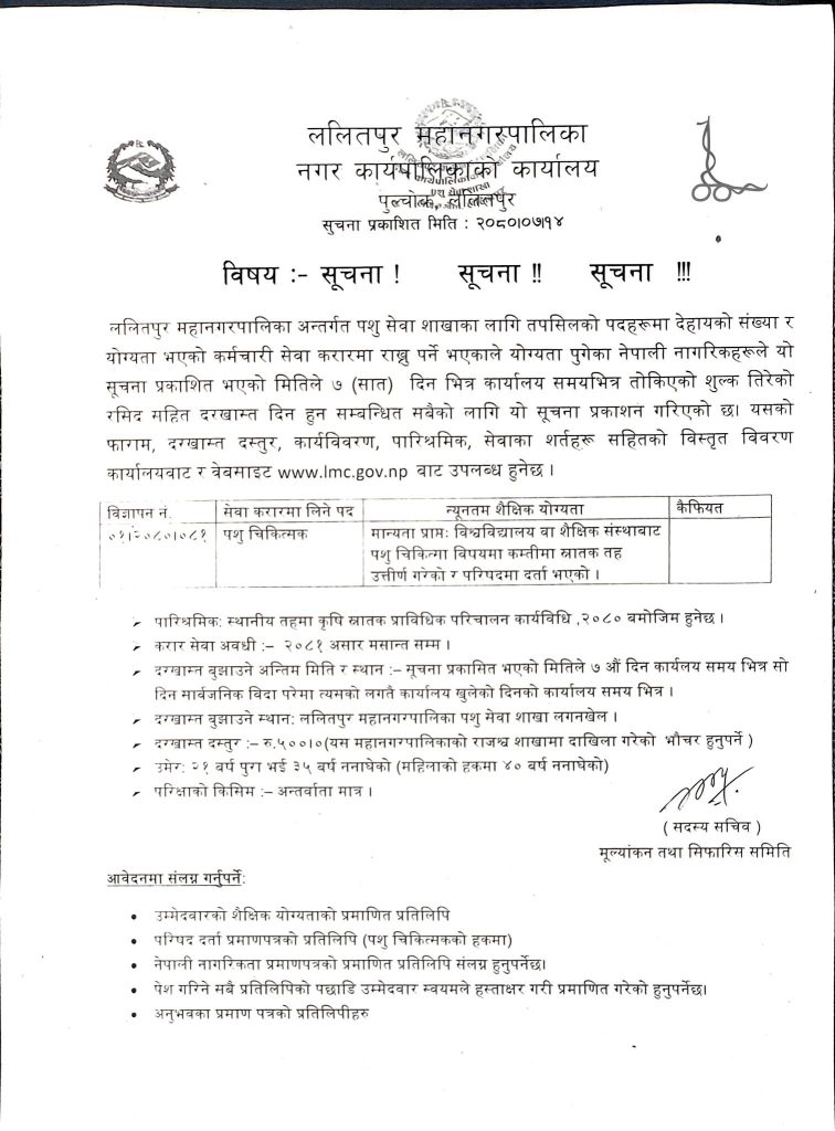 ललितपुर महानगरपालिका पशु सेवा शाखाको अत्यन्तै जरुरी सूचना